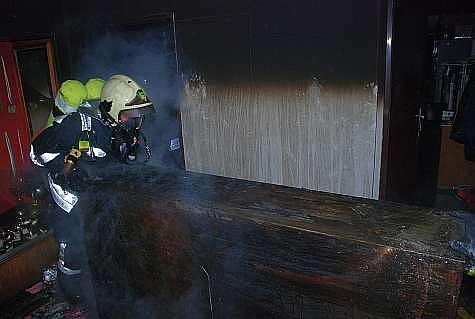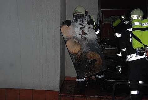 Der Anzeiger des Brandes teilte dem Gruppenkommandanten, bei der Erkundung, die Lage mit und das sich keine Personen in dem Gebäude befinden. Währenddessen wurde eine C-Angriffsleitung direkt vom Fahrzeug vorgenommen und ein Atemschutztrupp rüstete sich für den Innenangriff aus. Erst als die Löschleitung gefüllt war wurde vorsichtig die erste Türe geöffnet. Aufgrund der Sauerstoffzufuhr kam es zu einer Durchzündung. Der Atemschutztrupp kämpfte sich zwar in das Objekt vor musste aber nach kurzer Zeit aufgrund der starken Brandentwicklung den Rückzug antreten.