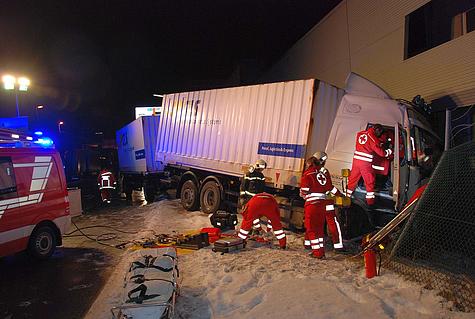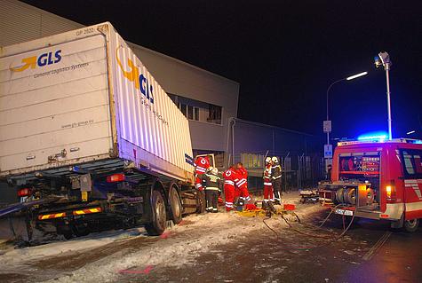 Im Kreuzungsbereich IZ-Straße 6 mit IZ-Straße 3 kam es zum Verkehrsunfall der beiden Schwerfahrzeuge. Wobei ein LKW auf die Gegenfahrspur kam, gegen eine Absperrung eines Firmenareals krachte und schließlich im Graben zum Stillstand kam. Dabei wurde der Fahrer in seinem Führerhaus eingeklemmt.