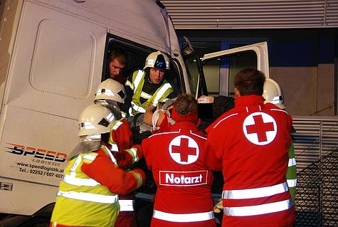 Die Beifahrertüre konnte händisch geöffnet werden. So konnte der Notarzt die Erstversorgung vornehmen. Nach der Stabilisierung des Lenkers wurde von der Feuerwehr Wr. Neudorf ein Spineboard für die schonende Rettung benutzt. Nach rund 20 Minuten konnte der Mann aus seiner misslichen Lage befreit werden.