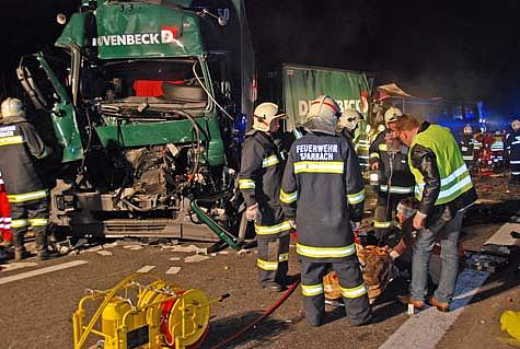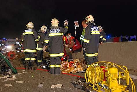 Auf der 1. Spur kollidierten ein LKW, ein LKW-Sattelzug sowie ein Reisebus. Der Lenker des Sattelzuges sowie mehrere Personen im Reisebus wurden dabei in den Kraftfahrzeugen eingeklemmt.