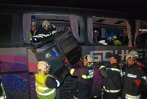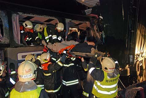 Die Befreiung der Insassen des Reisbusses gestaltete sich aufgrund der Enge im Fahrzeug äußerst schwierig. Um einen besseren Zugang zu den Verletzten zu bekommen, wurden die Sitzreihen aus dem Bus geschnitten und entfernt.