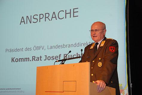 Anschließend fand Präsident des ÖBFV, LBD Komm.Rat Josef Buchta ergreifende Worte und bedankte sich für die hervoragende Arbeit und die erbrachte Leistung der Feuerwehren des Bezirkes Mödling.