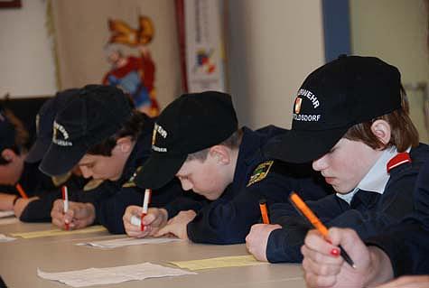 Für die jüngsten Jungfeuerwehrleute im Alter von 10 bis 12 Jahren geht es noch nicht so "heiß" zur Sache, sie beweisen ihre Kenntnisse bei einem sogenannten Wissenstestspiel.