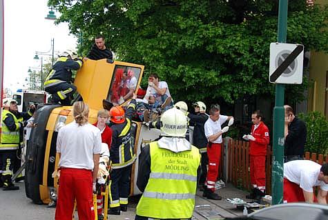 Im Mödlinger Stadtgebiet ereignete sich am 11. Mai 2010 ein Verkehrsunfall mit einer eingeklemmten Person auf der Kreuzung Wienerstraße - Templergasse.