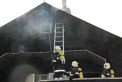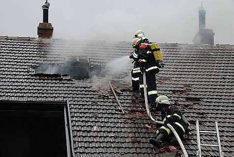 Um den Brand besser eindämmen zu können, öffnete ein Atemschutztrupp teilweise das Dach. Erst dann wurde sichtbar, dass sich der Brand auf das ganze obere Stockwerk samt Dachstuhl ausgebreitet hatte.