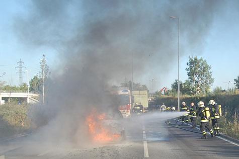 Aus bisher ungeklärter Ursache begann ein PKW im Industriezentrum Süd in der Nähe der Straße 14 zu brennen.