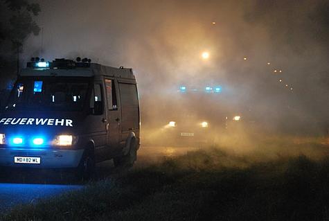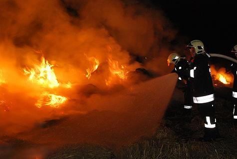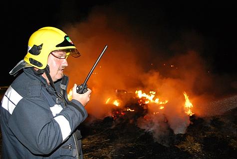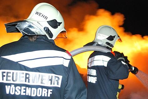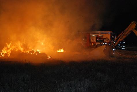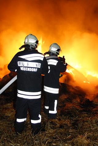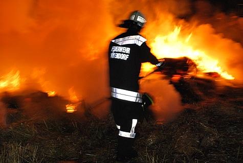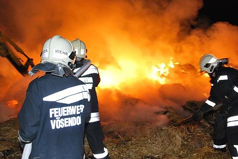 Kommandant Stellvertreter OBI Karl Paul befand sich gerade mit seinem Privat-PKW auf der Heimfahrt und sah den Feuerschein. Über Handy verständigte er die BAWZ Mödling – diese alarmierte um 22 Uhr 34 die Feuerwehr Vösendorf mit Pager-Gesamtalarm und Sirene. Die ausrückenden Kräfte waren rasch an der Einsatzstelle. OBI Karl Paul verständigte zwei Feuerwehrkameraden die sich mit Radladern zur Einsatzstelle begaben. Um die angrenzende stehende Frucht vor den Flammen zu schützen wurden zwei Rohre vorgenommen. Nach dem Eintreffen der zwei Radlader wurde die Strohtriste zerteilt und parallel mittels der zwei Angriffsrohre abgelöscht. Auch Feuerhaken und Feuerpatschen kamen zum Einsatz um mehrere Glutnester einzudämmen. Mittels Scheinwerfern wurde das Einsatzareal ausgeleuchtet. Durch einen Pendelverkehr der Einsatzfahrzeuge war eine permanente Wasserversorgung gegeben. Um zirka 0 Uhr 30 konnten die 25 Feuerwehrmänner mit den 5 Fahrzeugen wieder einrücken. Durch Einsatzleiter OBI Karl Paul wurde eine Kontrolle der Einsatzstelle um 1 Uhr 30 angeordnet.Bildautor: Florian Schützenhofer/Pressestelle BFK Mödling