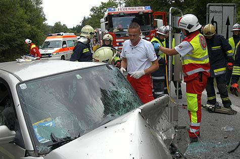 Sofort nach Ankunft der Einsatzkräfte wurde begonnen, mittels eines hydraulischen Rettungssatzes den eingeklemmten Fahrer zu befreien. Die Fahrerin des zweiten PKW war lediglich leicht verletzt und konnte den Wagen selbst verlassen.