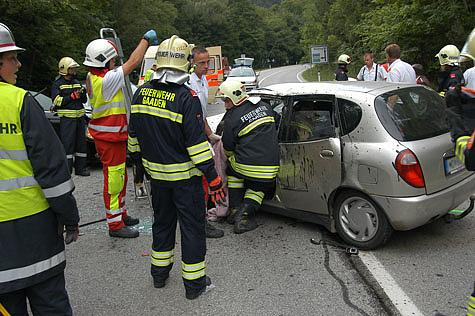 In Gaaden kam es am Nachmittag des 23. Juli zu einem folgenschweren Verkehrsunfall. Ein Mann war von Gaaden Richtung Mödling auf der B11 unterwegs und geriet aus ungeklärter Ursache in den Gegenverkehr. Ungebremst krachte der Kleinwagen gegen ein entgegenkommendes Fahrzeug. Bei dem Frontalcrash wurden beide PKW schwer beschädigt und der Fahrer des Kleinwagens eingeklemmt.