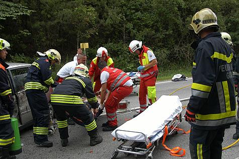 Die Fahrerin des zweiten Wagens wurde von einem Team des Arbeitersamariterbundes versorgt. Währenddessen arbeiteten die Feuerwehreinsatzkräfte mit einem hydraulischen Rettungsspreizer an der Tür des Kleinwagens. Kurze Zeit später konnte die Fahrertüre entfernt und mit der Rettung des schwer verletzten Mannes begonnen werden. Bei den Erstmaßnahmen durch ein Rettungsteam war der Mann bei vollem Bewusstsein und ansprechbar. Gemeinsam durch Feuerwehr und Rettung wurde der Verletzte aus dem Unfallwrack gerettet.