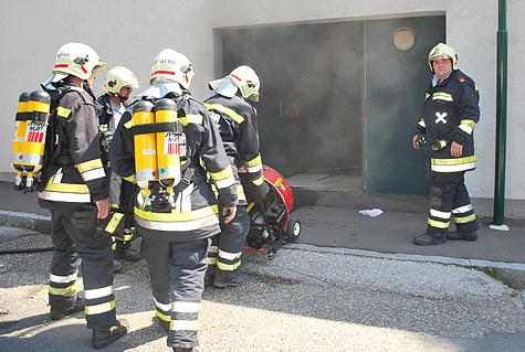 „Brand in einer Garage“ war die Alarmierung für die Feuerwehr Perchtoldsdorf durch die BAWZ Mödling um 10 Uhr 54.