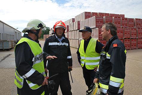 Der Bürgermeister der Gemeinde Hennersdorf Kurt Kremzar und Bezirksfeuerwehrkommandant LFR Franz Koternetz kamen zur Einsatzstelle und überzeugten sich persönlich von der hervorragenden Arbeit der Freiwilligen Feuerwehren.