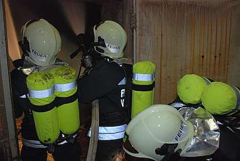 Nach dem Eintreffen der Einsatzkräfte wurde ein Atemschutztrupp mit einem C-Rohr zur Erkundung in das Objekt geschickt. Aufgrund der extrem hohen Hitzeentwicklung im Bereich des Trockenofens, die mehrere hundert Grad Celsius erreichte, musste dieser aber umkehren.