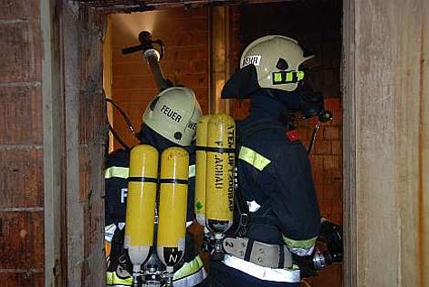 Nachfolgende Einsatzkräfte der FF Hennersdorf und Vösendorf rüsteten weitere Atemschutztrupps aus und stellten die Wasserversorgung über eine 240 Meter lange Zubringleitung sicher.