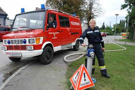 Freiwillige Feuerwehr Achau, 12 Feuerwehrmitglieder, 2 Fahrzeuge, HBI Christian Giwiser