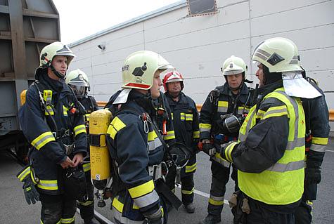 Die Befehlsausgabe musste rasch und präzise erfolgen, da die Feuerwehr Wr. Neudorf schon an ihre Grenzen gestoßen war. Zur Wasserversorgung standen nur 4 Saugstellen auf dem Gelände zur Verfügung, die zu kühlenden Filteranlagen befanden sich aber auf der anderen Seite des Areals. Desweiteren mussten so schnell wie möglich 2 Atemschutztrupps gestellt werden um die vermissten Personen in dem Brandobjekt zu suchen. Außerdem sollte das Großtanklöschfahrzeug der FF Wr. Neudorf mit Wasser gespeist werden.
