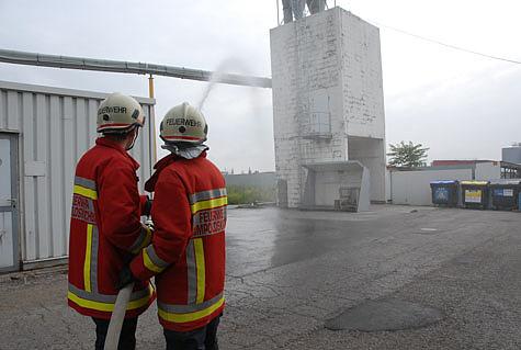 Während die Atemschutztrupps mit Hochdruck nach den Vermissten suchten, mussten die übrigen Einsatzkräfte die Löschleitungen für die Kühlung der Filteranlagen legen. Dazu mussten auf zwei unterschiedlichen Wegen mehrere hundert Meter lange B-Leitungen gelegt werden. Als zusätzliche Herausforderung musste sichergestellt werden, dass der Werksverkehr auf dem Gelände weiterlaufen konnte. Daher wurden alle entsprechenden Stellen mit Schlauchbrücken ausgestattet.