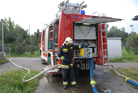 Nachdem die Aufgaben verteilt waren, fuhren die entsprechenden Fahrzeuge die Einsatzstellen an und begannen mit den Aufbauarbeiten. Zuerst wurden die Saugstellen von Tanklöschfahrzeugen besetzt und die Wasserversorgung zum Brandobjekt aufgebaut. Die ersten Atemschutztrupps meldeten sich wenig später beim Einsatzleiter der FF Wr. Neudorf. LM Roman Winter verteilte die Aufgaben an die Atemschutztrupps und gab die bekannten Informationen weiter.