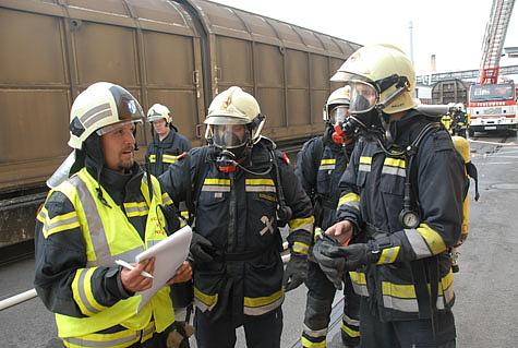Nach dem Eintreffen des Vorauskommandos und der Einsatzbesprechung mit der örtlichen Feuerwehr wurde schnell klar, dass die Orientierung auf dem riesigen Gelände die größte Schwierigkeit darstellte. Als der Zugskommandant und sein Team die Lage erfasst hatten, wurde eine Einsatzbesprechung mit den Gruppenkommandanten der 12 eingesetzten Fahrzeuge durchgeführt.