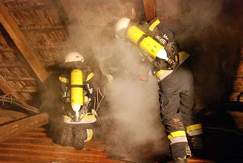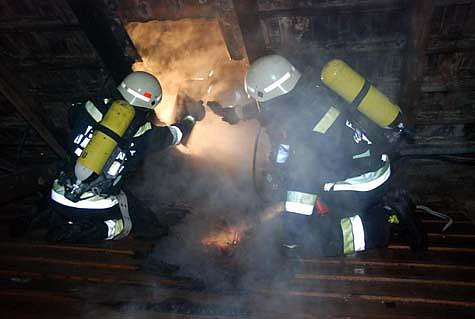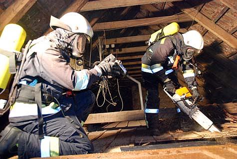 Gemeinsam gelang es den Brand unter Kontrolle zu bringen und schließlich zu löschen. Um etwaige Glutnester ausschließen zu können, wurde die Dachkonstruktion mit einer Wärmebildkamera abgesucht.