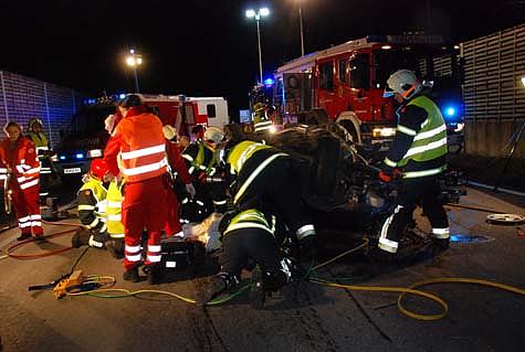 Zu einem schweren Verkehrsunfall mit Menschenrettung kam es in den Nachtstunden des 23. Novembers 2010 auf der Bundesstraße 11 in Fahrtrichtung Kreisverkehr Biedermannsdorf/Laxenburg.
