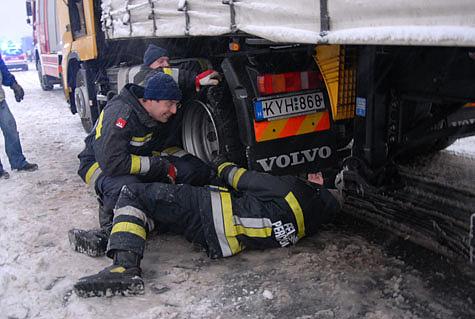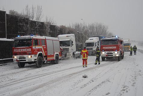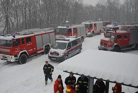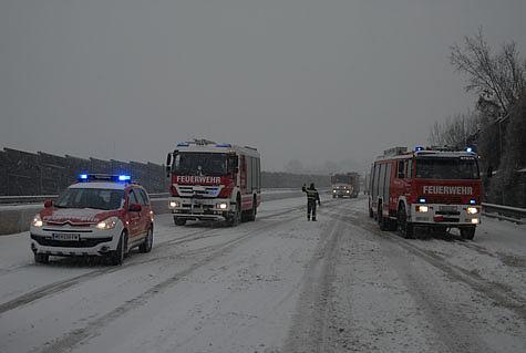 Sämtliche hängengebliebenen Schwerfahrzeuge die ohne Ketten unterwegs waren wurden durch die Feuerwehr abgeschleppt.