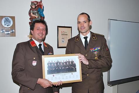 Nach Ansprachen von Bezirksfeuerwehrkommandant LFR Franz Koternetz, dem Sprenggruppenkommandanten FT Ing. Franz Sittner und BR Josef Drexler bekamen alle Sprengbefugte des Bezirkes Mödling einheitliche Dienstkappen und Poloshirts überreicht.