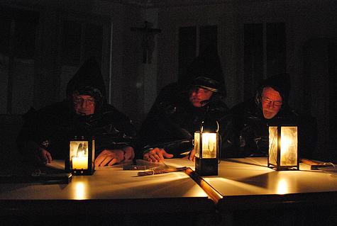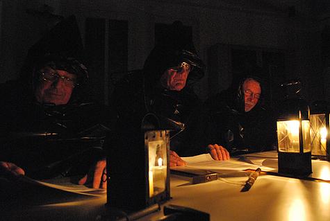 In einer mystischen Stimmung bei totaler Dunkelheit im Saal, lediglich durch drei Bergmannleuchten und einem Glockenspiel umrahmt, boten die drei Akteure mit schauspielerischem Können einen Auszug aus der Tätigkeit der Sprenggruppe des Bezirkes Mödling.