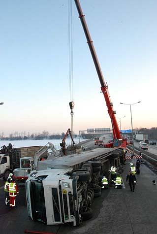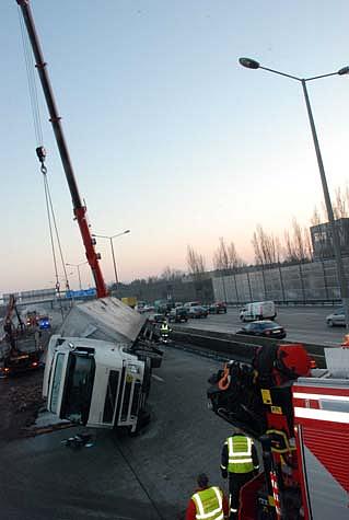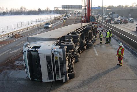Der Fahrer des Lkws dürfte daraufhin die Kontrolle über das tonnenschwere Fahrzeug verloren haben, sodass der Lkw kurz darauf umkippte und über die Autobahn schlitterte. Dabei wurde noch ein weiterer Pkw touchiert und schwer beschädigt.