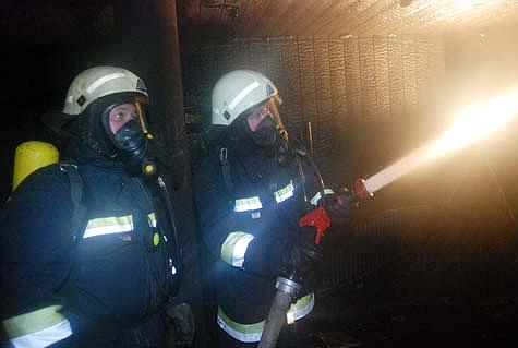 Weiters wurde ein zweiter Atemschutztrupp mit einem weiteren C-Rohr zur Brandbekämpfung in den Keller geschickt. Zusätzlich wurde ein dritter Trupp als Atemschutzreserve bereit gestellt.