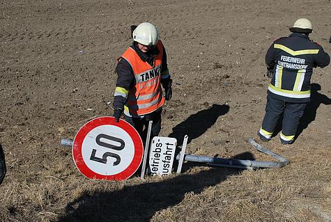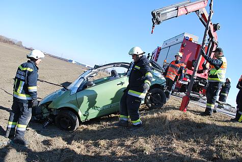 Durch die Feuerwehr Guntramsdorf wurde das Unfallfahrzeug mittels Ladekran des Schweren Rüstfahrzeuges aus dem Feld geborgen und anschließend von der Fahrbahn entfernt. Die weitverstreuten Autoteile mussten ebenfalls eingesammelt werden.