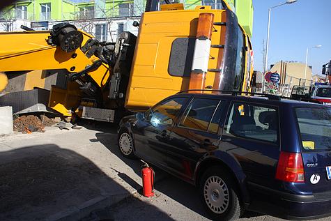 „Umgestürzter Autoladekran“ lautete die Alarmierung der Bezirksalarmzentrale um 14 Uhr 35 für die Feuerwehr Vösendorf.