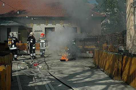 Am Vorplatz der Freiwilligen Feuerwehr Perchtoldsdorf war am 24. März 2011 gerade ein Fotoshooting im Gange, als plötzlich ein hektischer und aufgeregter Mann mit den Worten „Hilfe, beim Chinesen brennt’s“ zulief.