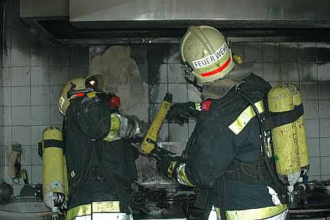 Nach der Erkundung durch Einsatzleiter ABI Franz Jezek begab sich ein Atemschutztrupp ins Innere des Lokales. Der Brand konnte in der Küche lokalisiert werden.