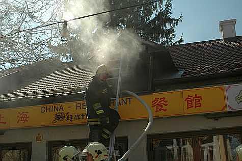 Nur wenige Augenblicke später rückte das erste Löschfahrzeug zum Brandeinsatz in die Brunnergasse/Ecke Donauwörtherstraße aus. Am Einsatzort angekommen, drang bereits dichter Rauch aus dem China Restaurant.