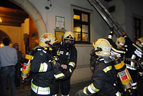 Als das erste Feuerwehrfahrzeug an der Einsatzadresse ankam, drang bereits aus dem Erdgeschoß sowie aus dem 1. Stock starker Rauch.