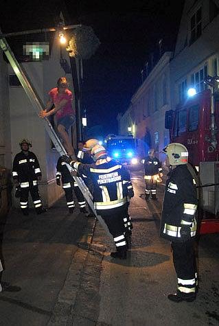 Im Obergeschoß saßen zwei Frauen am Fenster, denen der Fluchtweg durch das Haus aufgrund der starken Rauchentwicklung abgeschnitten war.