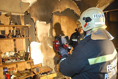 Der Brand konnte mittels des C-Rohres gelöscht werden und das gesamte Haus wurde durch einen Hochleistungslüfter vom Rauch befreit. Die Feuerwehrmänner kontrollierten mit der Wärmebildkamera den betroffenen Wohnbereich.