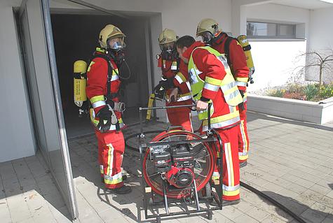 Einsatzleiter OBI Christian Mayerhofer ordnete daher an, dass ein Atemschutztrupp mit einem Rohr einmarschiert.