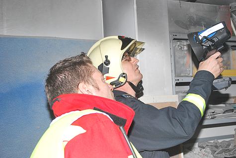 Mittels einer Wärmebildkamera untersuchte die Feuerwehr Brunn am Gebirge die Garage auf weitere Brandherde.