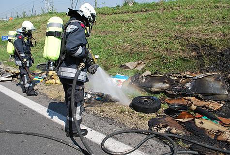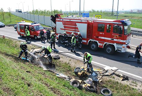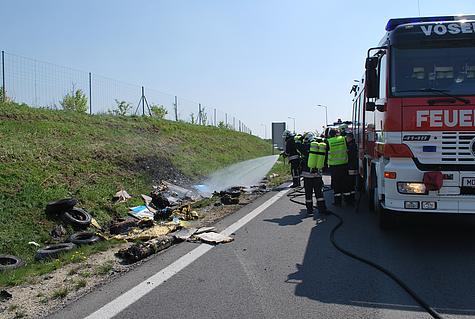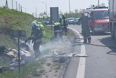 Dort begann der Brand auf die Wiese überzugreifen. Die Feuerwehr Vösendorf bekämpfte mit einem Rohr unter Atemschutz den Brand. Dabei musste die Autobahnabfahrt gesperrt werden.