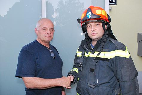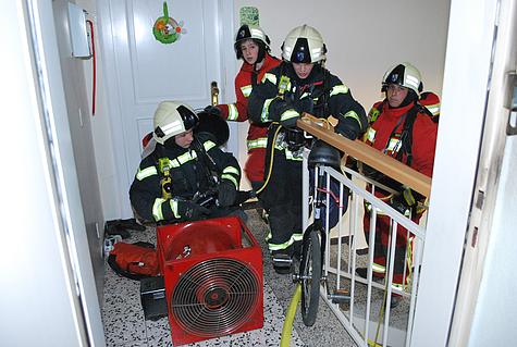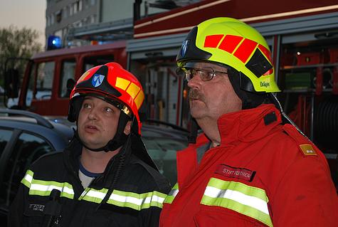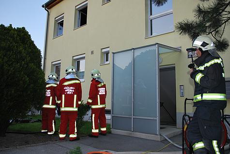 Als er ins Stiegenhaus ging, sah er Rauch durch die gegenüberliegende Nachbartüre austreten. Da er wusste, dass in dieser Wohnung eine 82-jährige Dame wohnt, erkannte er sofort die kritische Situation und trat die Türe ein. Die Wohnung war zu diesem Zeitpunkt völlig verraucht. Helmut Graf lief ins Innere der Wohnung und fand in Kürze die betagte Dame und brachte sie sofort in Sicherheit. Seine Gattin alarmierte parallel dazu die Feuerwehr. Disponent Michael Träumer alarmierte um 19 Uhr 16 die Feuerwehr Wiener Neudorf. Nachdem H. Graf die Nachbarin in seine eigene Wohnung gebracht hatte, schloss er die Türe der Brandwohnung um einen Rauchaustritt in das Stiegenhaus zu vermeiden. Anschließend sperrte er vorsorglich den Gas Haupthahn ab. Zu diesem Zeitpunkt waren bereits die ersten Einsatzkräfte der Freiwilligen Feuerwehr Wiener Neudorf eingetroffen. Einsatzleiter HBI Walter Wistermayer ließ sofort einen Atemschutztrupp mit einem C-Rohr in den 1. Stock einmarschieren. Bevor die Türe der Brandwohnung wieder geöffnet wurde, montierten die Feuerwehrmänner am äußeren Türrahmen einen Rauchvorhang. Dadurch waren das Stiegenhaus und die angrenzenden Wohnungsnachbarn während des gesamten Einsatzes nicht gefährdet. Die Feuerwehrmänner fanden die Küche in Brand vor. Mittels des C-Rohres wurde der Brand bekämpft. Durch einen Hochleistungslüfter und ein Be- und Entlüftungsgerät konnte in Kürze die Wohnung vom Rauch befreit werden. Das Rote Kreuz versorgte vor Ort die schwerverletzte Dame. Nach ersten Einschätzungen dürfte sie eine starke Rauchgasvergiftung sowie Verbrennungen erlitten haben. Die verbrannten Küchenteile wurden über das Fenster auf die darunterliegende Wiese geworfen und mit einem HD-Rohr abgelöscht. Der Feuerwehr Einsatzleiter Walter Wistermayer bedankte sich noch vor Ort bei dem Lebensretter Helmut Graf. Laut Wistermayer wäre dieser Einsatz mit großer Wahrscheinlichkeit ohne dem beherzten Eingreifen des Gemeindebediensteten sehr tragisch ausgegangen. Mittels Wärmebildkamera wurde die Küche kontrolliert und alle noch erwärmten Teile aus der Wohnung entfernt. Die Ursache des Zimmerbrandes wird von der Polizei ermittelt. Die Freiwillige Feuerwehr Wiener Neudorf war mit 34 Mann und fünf Fahrzeugen im Einsatz.Bildautor: Florian Schützenhofer/Pressestelle BFK Mödling