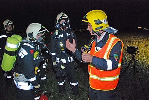 Mit einem C-Rohr wurden diese anschließend gekühlt. Nach fast zwei Stunden konnten die 24 Männer mit deren 4 Fahrzeugen wieder ins Feuerwehrhaus einrücken.