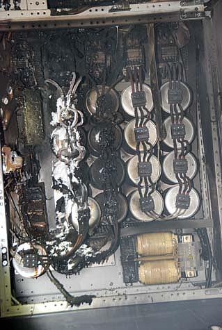 Die Kontrolle mit der Wärmebildkamera zeigte jedoch hohe Temperaturen im Bereich der Kondensatoren. Deshalb wurden sie durch den Atemschutztrupp entfernt und ins Freie gebracht.