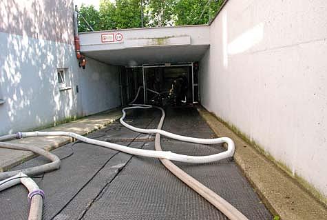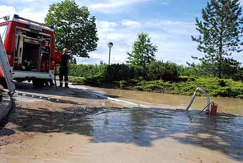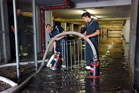 Eine Vielzahl an Kellern, Tiefgaragen, Lichtschächten, offenen Kanaldeckeln, Aufzugschächten mussten von den Wassermassen befreit werden. Dies erledigten die Freiwilligen Feuerwehren mit Unterwasserpumpen und Wassersaugern in stundenlanger teils mühevoller Arbeit.