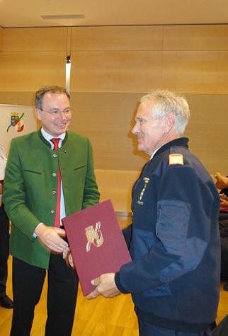 Vom Präsident des ÖBFV KommR Josef Buchta und Landesrat Dr. Stephan Pernkopf wurde Franz Koternetz zum Ehrenlandesfeuerwehrrat ernannt.