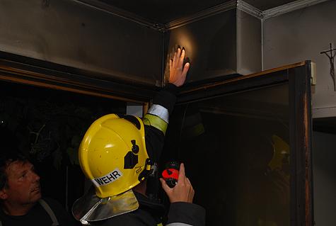 Da unklar war ob sich noch Glutnester in der Zwischendecke befanden wurde diese an einer Zimmerecke geöffnet. Im Zuge dieser Kontrolle konnten keine Glutnester festgestellt werden.