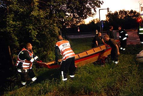 Gleichzeitig wurde die Zille Guntramsdorf zu Wasser gelassen. In der Zwischenzeit fand die Polizei ein Paar weiße Damenschuhe im Wasser. Zwei Mitglieder der Feuerwehr Guntramsdof sind auch Mitglieder der Tauchgruppe Süd und begaben sich unverzüglich ins 14 Grad kalte Wasser. Zusätzlich wurde die Tauchgruppe Süd alarmiert.