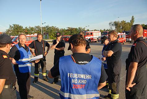 Nach einer kurzen Begrüßung durch Bereitschaftskommandant Kurt Raitmar wurden die vier KHD-Züge auf die vier Ortschaften Dornbach, Gaaden, Hennersdorf und Guntramsdorf aufgeteilt.