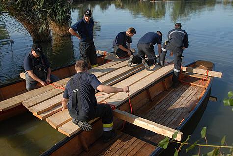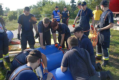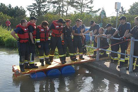 Bei einer Station musste aus Fässern, Holz und Leinen ein Schwimmsteg errichtet werden, dessen Tragkraft nach Fertigstellung auch getestet wurde. Die zweite Gruppe musste aus 2 Zillen, einigen Holzelementen, Leinen und einer Tragkraftspritze ein Zillenglied mit eigenem Antrieb aufbauen. Auch diese Konstruktion musste am Ende ihre Tauglichkeit beweisen.